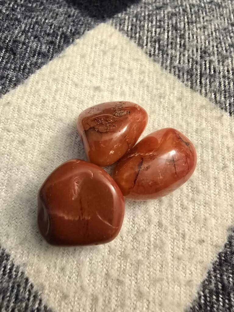L’introspection est mise de l’avant pour faire le point sur l’année qui vient de passer et laisser tomber ce qui ne nous va plus afin de faire de la place pour l’abondance à notre portée. Feux sacrés, repas festifs et rituels sont à l’honneur. Qui dit rituel, dit aussi pierres. Elles sont légion. Cette fois-ci, je vous propose de communier avec la Cornaline.