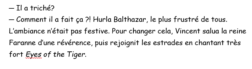Parmi les participants aussi coloré les uns que les autres, le personnage principal se découvre avec plaisir. Vincent, simple voleur québécois de la Terre des Sciences (la nôtre) celle qui n’a pas la magie, vient mettre du piquant dans la narration soit avec son humour désinvolte, soit avec ses décisions imprévisibles. Bref, il fout le bordel.